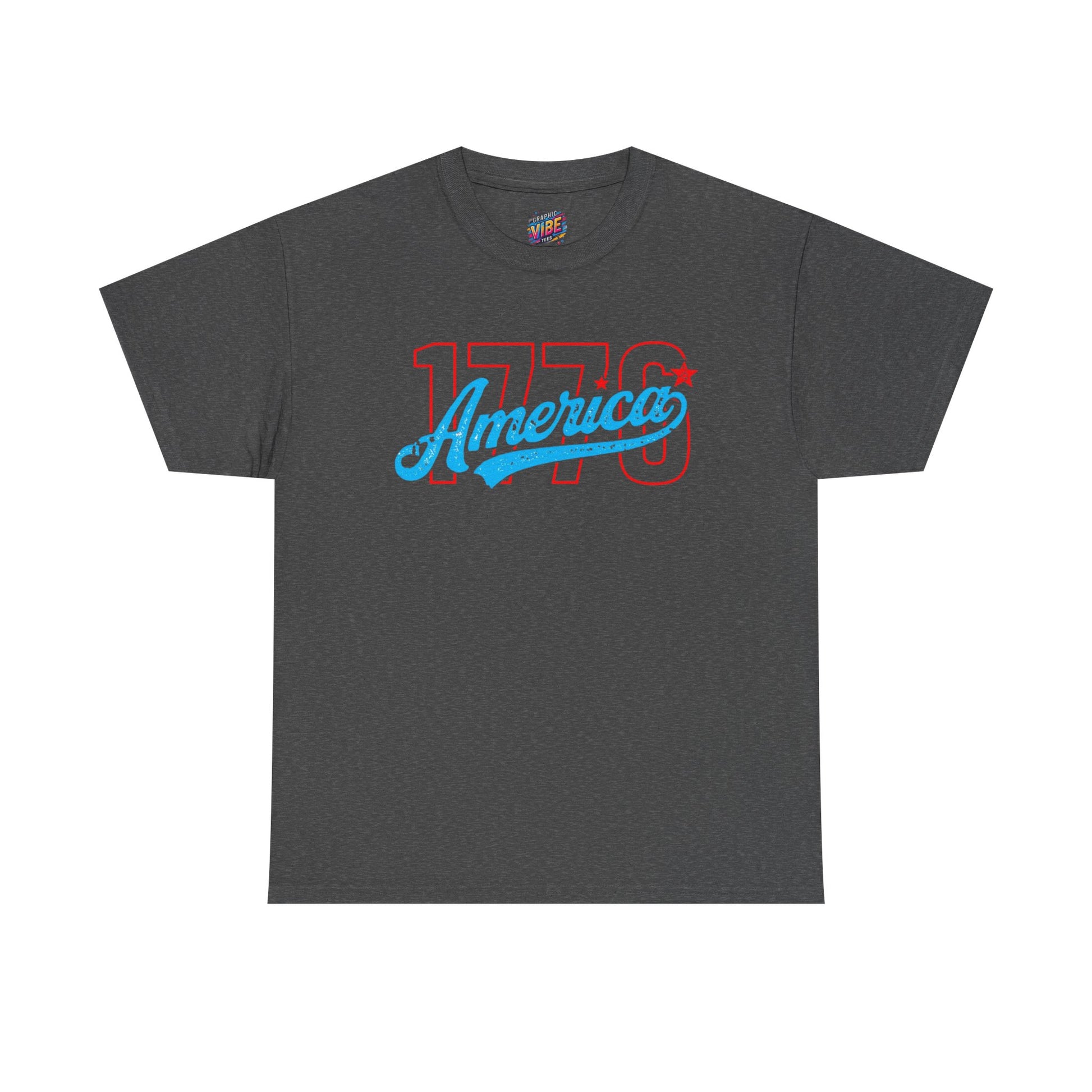 1776 America Unisex Heavy Cotton Tee, Vintage Style Shirt, Independence Day Apparel, Gifts for Patriots, Casual Wear