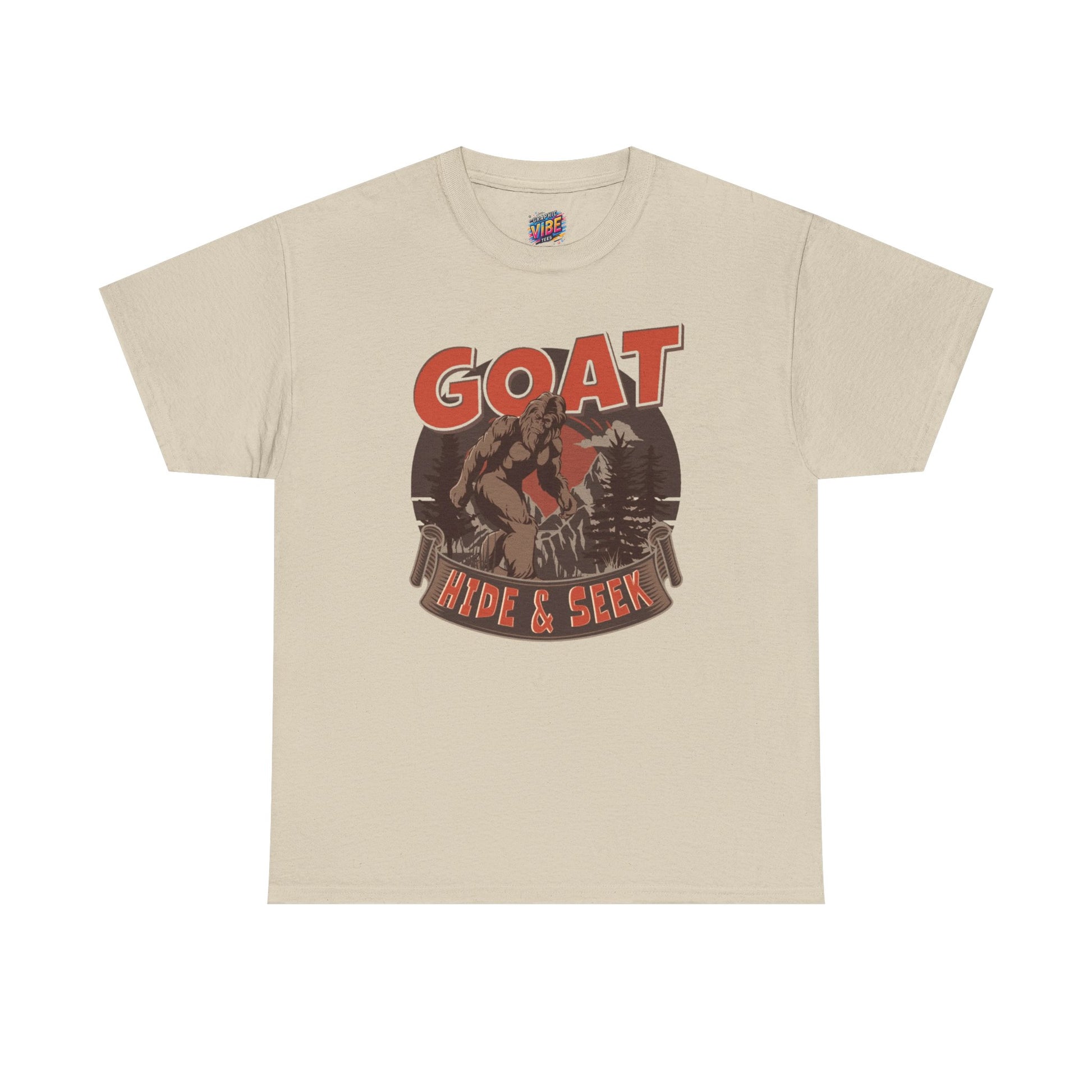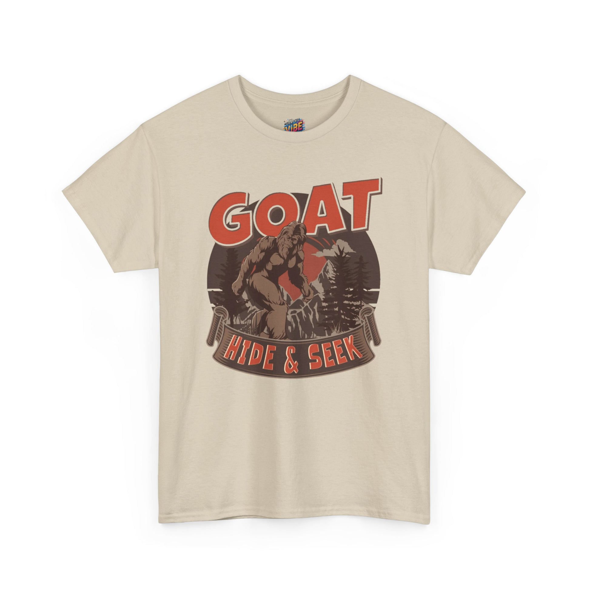 Big Foot Hide and Seek Goat T-Shirt, Fun Graphic Tee for Animal Lovers, Farmhouse Decor, Casual Wear, Gifts for Kids & Adults, Unique Outdoor
