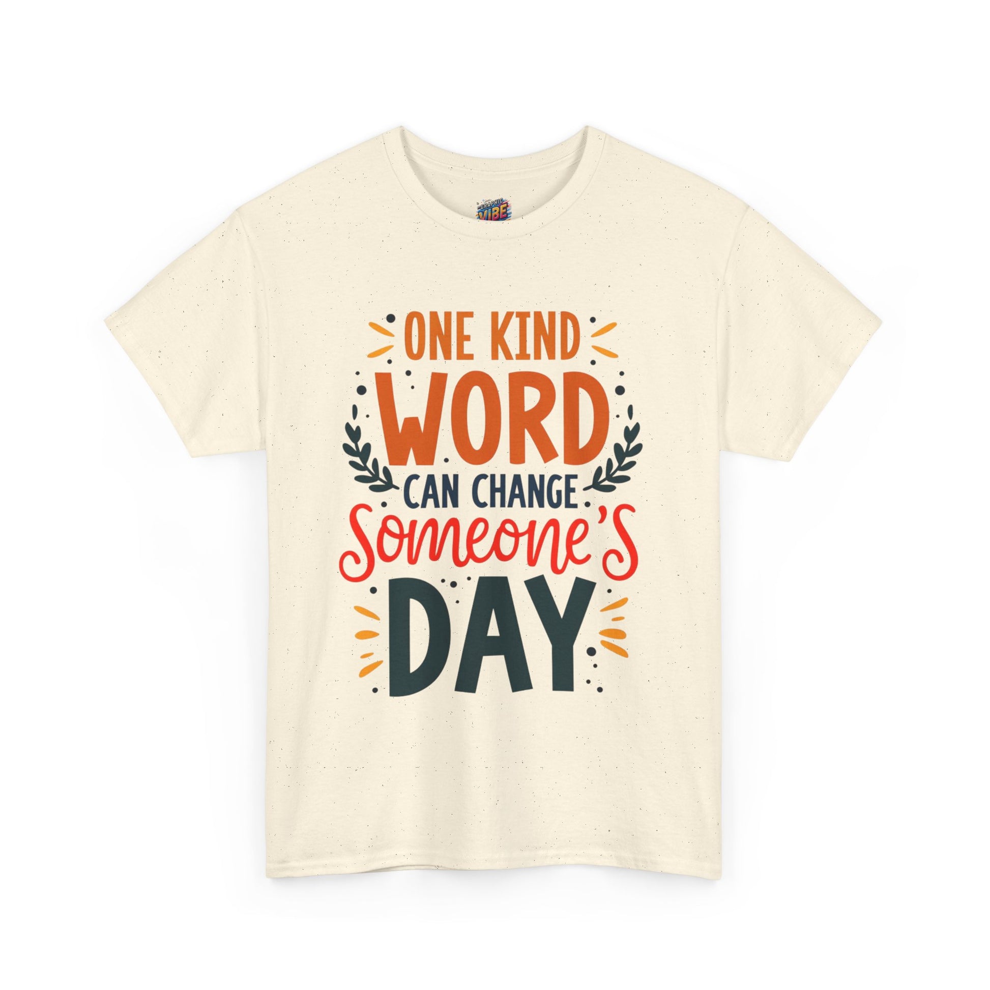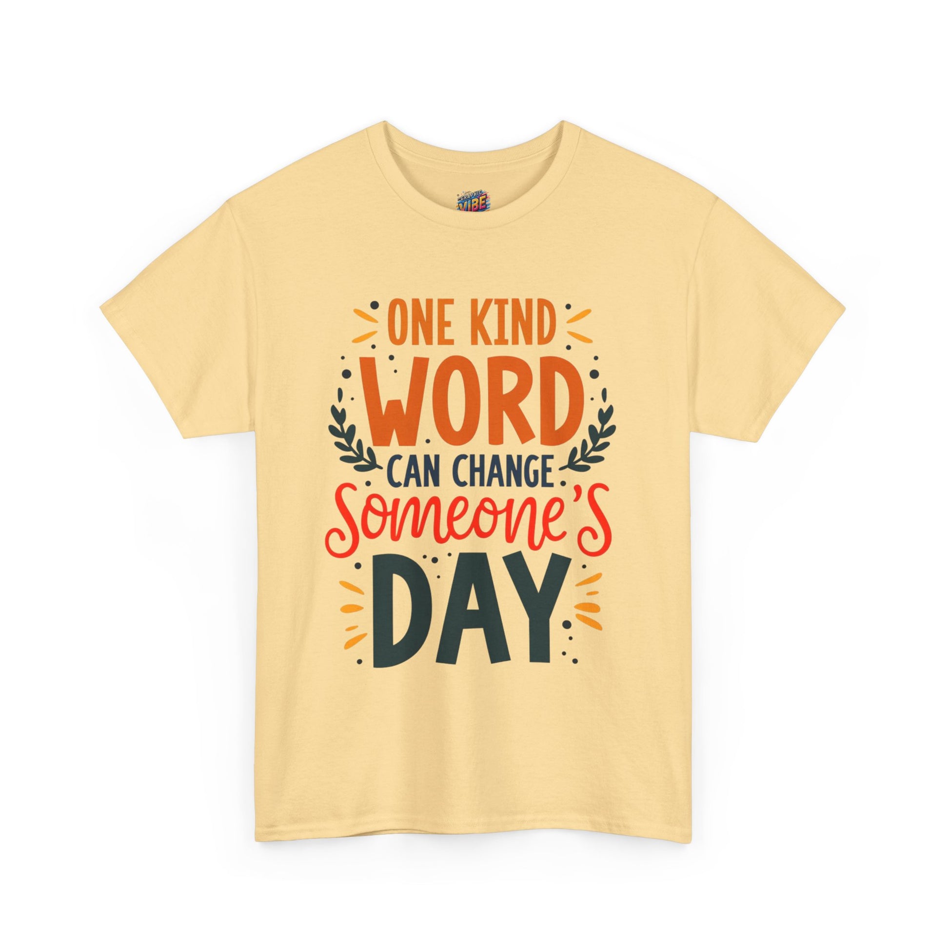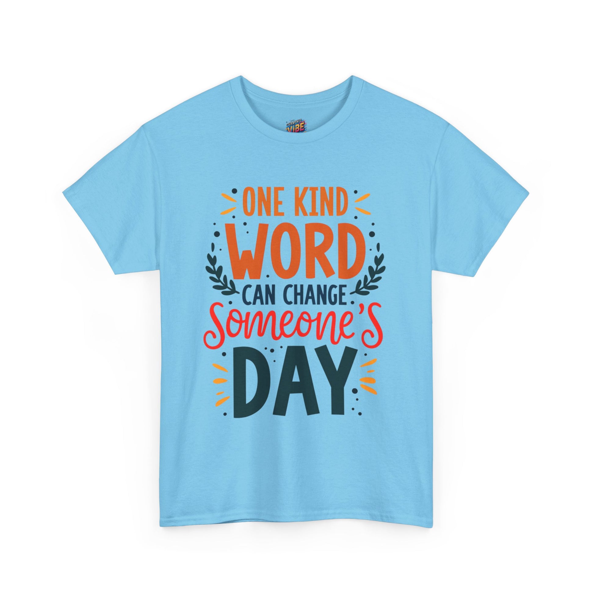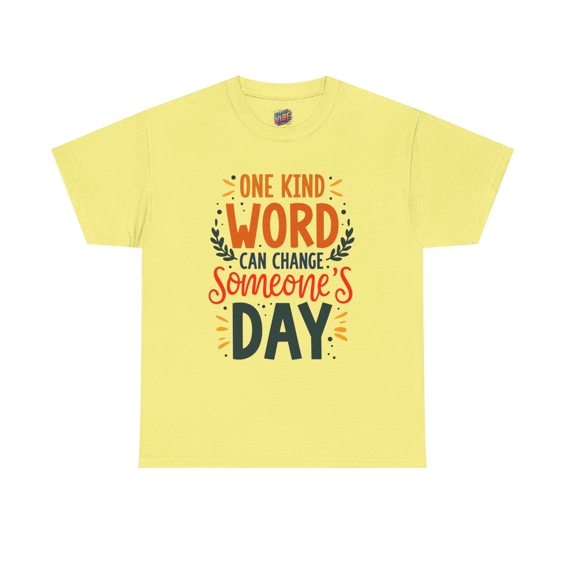 Introducing this uplifting Unisex Heavy Cotton Tee, perfect for spreading positivity and good vibes! The vibrant design features the encouraging phrase, "One kind word can change someone's day," making it an ideal choice for those who believe in the power of kindness. This tee is versatile, effortlessly blending into any casual or semi-formal occasion, from gatherings with friends to community events. It’s a wonderful gift for friends and family, making it perfect for holidays like World Kindness Day, birthdays, or just to brighten someone’s day. Comfortable and stylish, this tee is designed for adults who want to express their positive spirit while enjoying a relaxed fit.