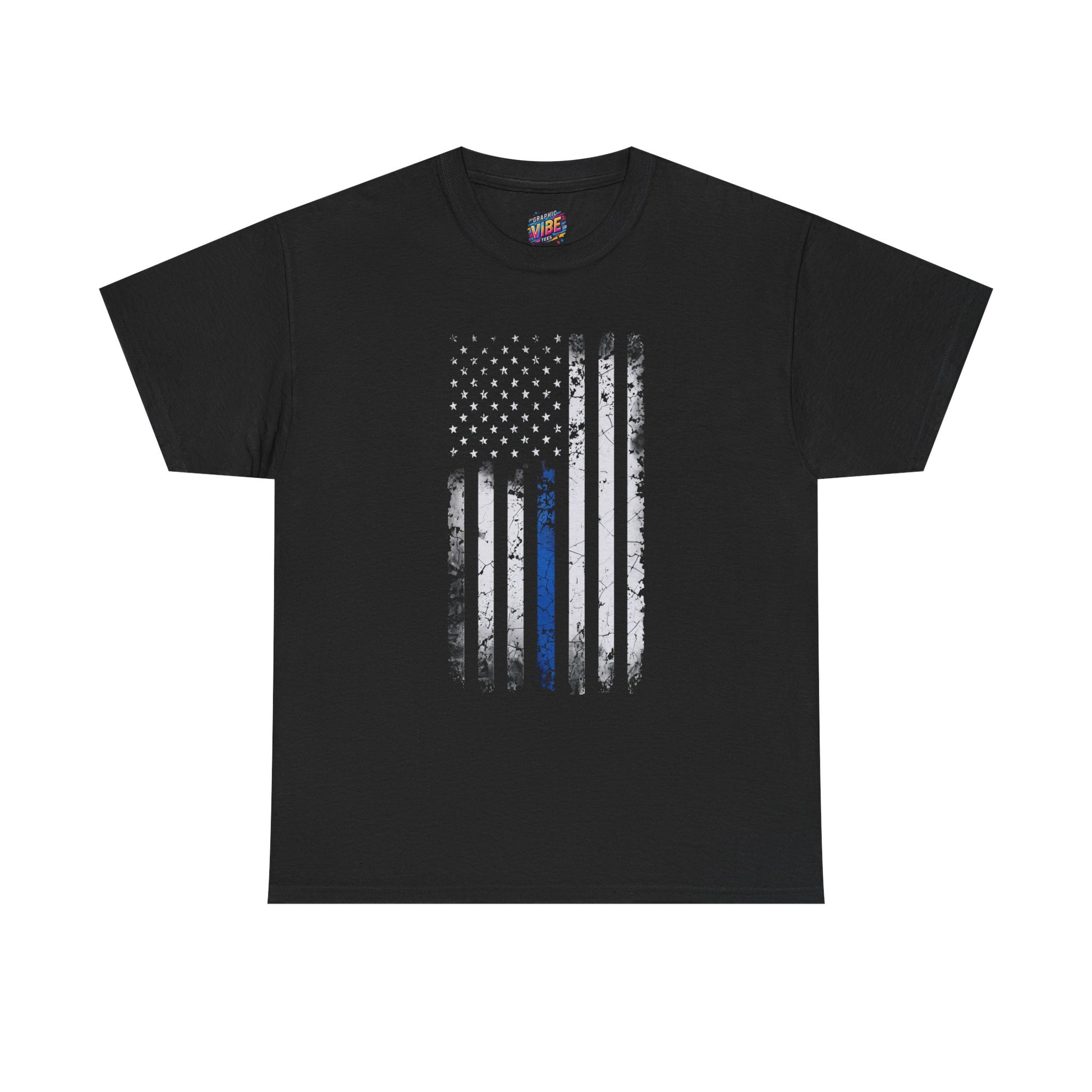 Patriotic Blue Line Support Tee - USA Flag with Blue Line, Ideal for Police Support, Memorial Days, Veteran's Day, Gifts for Law Enforcement, Unisex