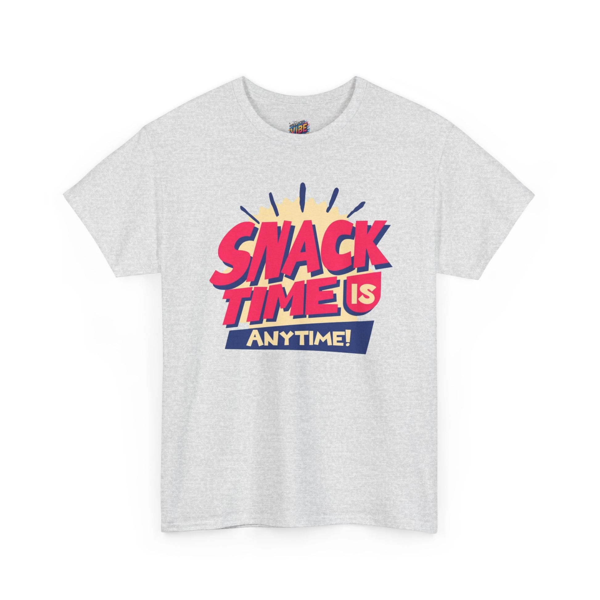 Snack Time Is Anytime! Unisex Heavy Cotton Tee, Fun Graphic Tee, Snack Lover Gift, Casual Summer Shirt, Quirky Food T-Shirt